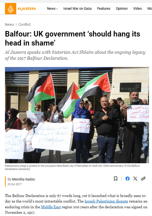 We have exposed that the 1917 Balfour Declaration, a colonialist document that conferred the rights of the 90% Palestinian majority over to a 10% minority, was horrifically flawed from its inception. According to Avi Shlaim, the Balfour Declaration “completely disregarded the rights and aspirations of the people of [Palestine].“ [Emphasis added.]