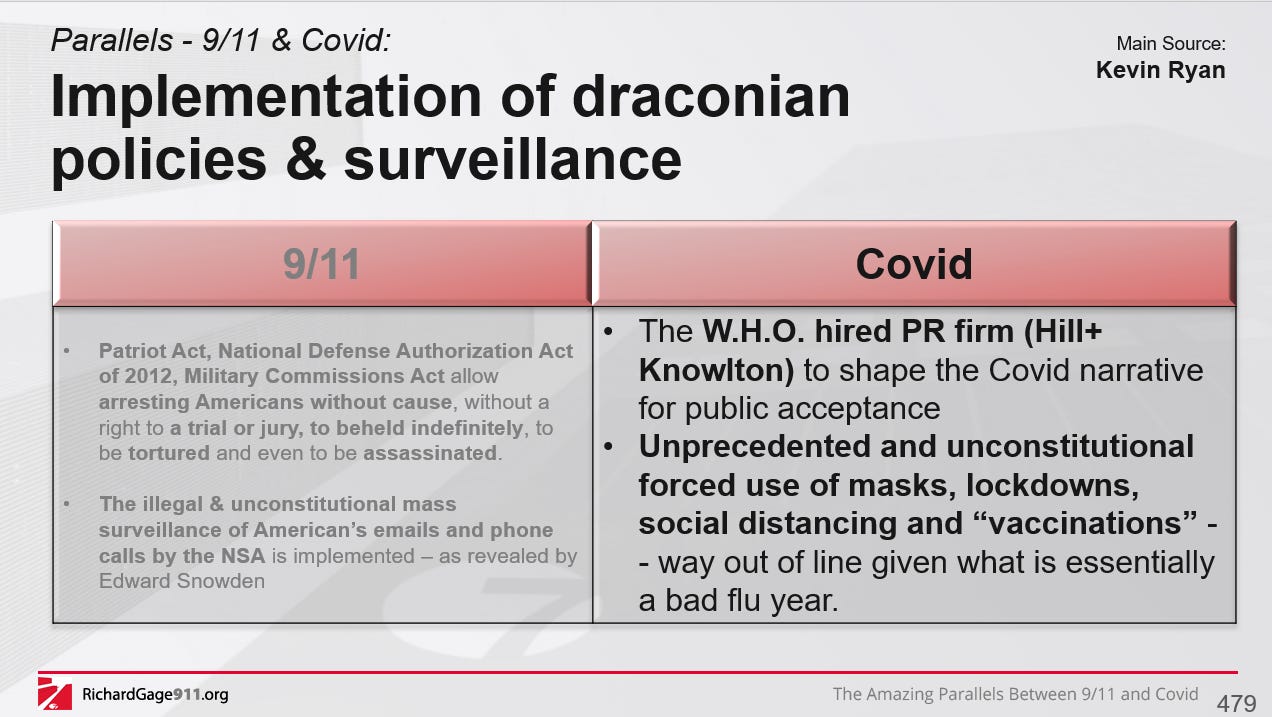 Kevin discovered 11 parallels between 9/11 & Covid - and I added a couple:
