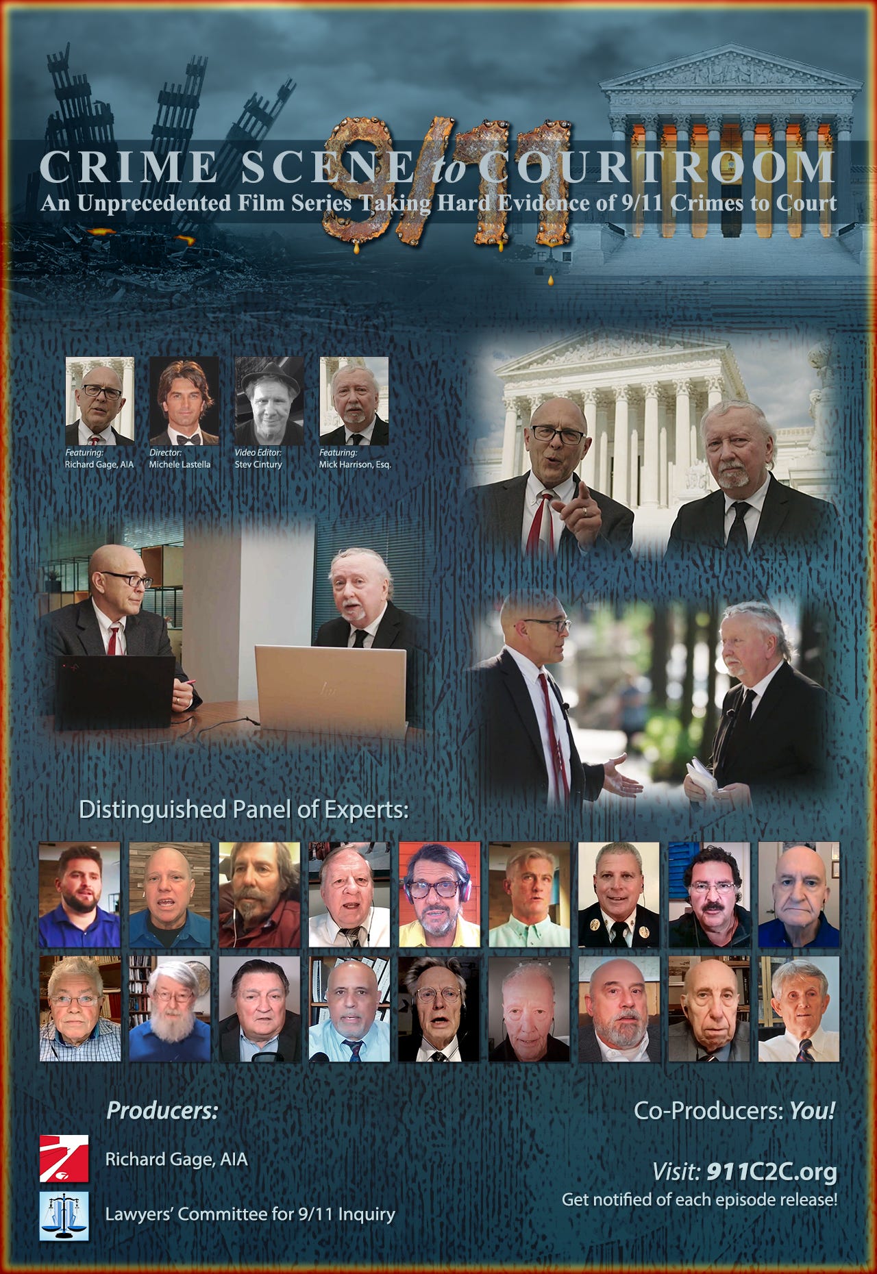 Featured in upcoming episodes will be key witnesses and technical experts interviewed by architect Richard Gage, AIA, and insightful legal analysis by attorney Mick Harrison, Litigation Director of the Lawyers’ Committee, who advises the Jurors on the legal relevance of each component of the evidence and how they can be used to identify and indict the real perpetrators of 9/11!